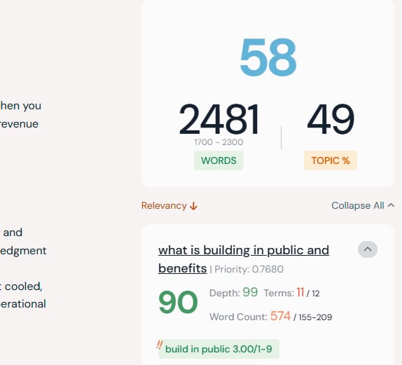 With the feedback, you'll also get comments on the left to show you what sections to update to get the most bang for your buck.